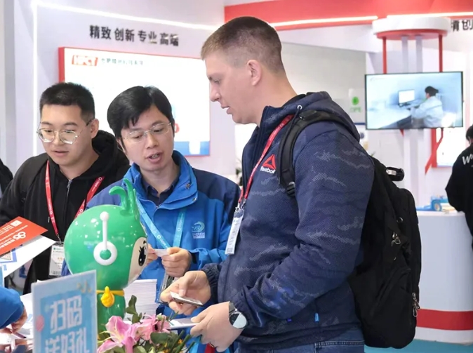 國外客戶蒞臨展臺(tái)參觀交流: